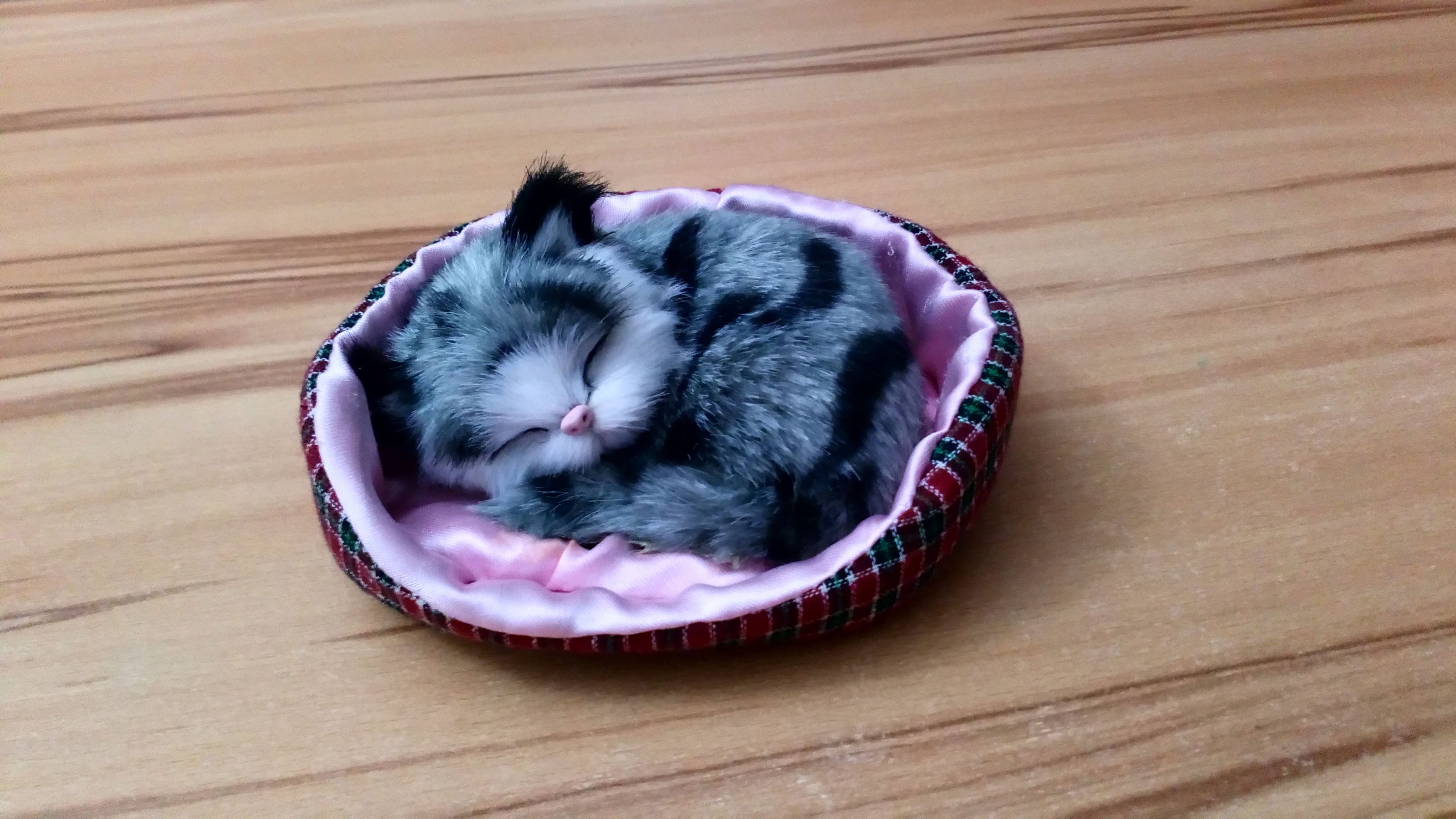 Látku obstrihneme do tvaru kruhu a na šijacom stroji zošijeme. Nezošivame do konca. Necháme si otvor na navlečenie látkovej gumy alebo farebnej stuhy. Stuhu navlečieme a ručne zošijeme. Potom na hračku zo spodnej strany potrieme lepidlom a priložíme na ušitú látku. Necháme zaschnúť cca 15 minút.