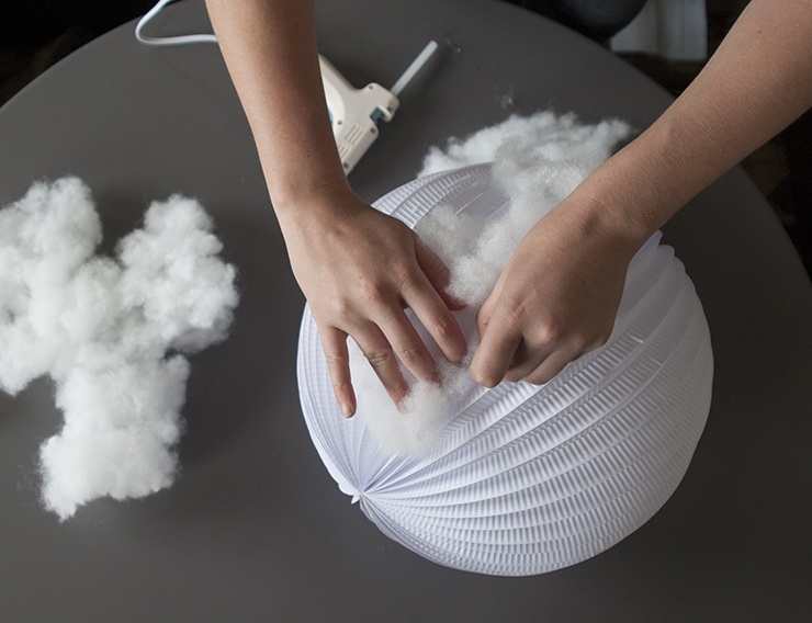 3. Pokračujte až kým nepokryjete vatou celý lampión.