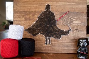 Teraz sa konečne môžeme vrhnúť na motanie špagátikov. Začneme v akomkoľvek bode a pokračujeme obmotaním každého klinčeka po obvode obrázka a potom len náhodne motáme špagátiky tak, aby sme vyplnili obrázok.